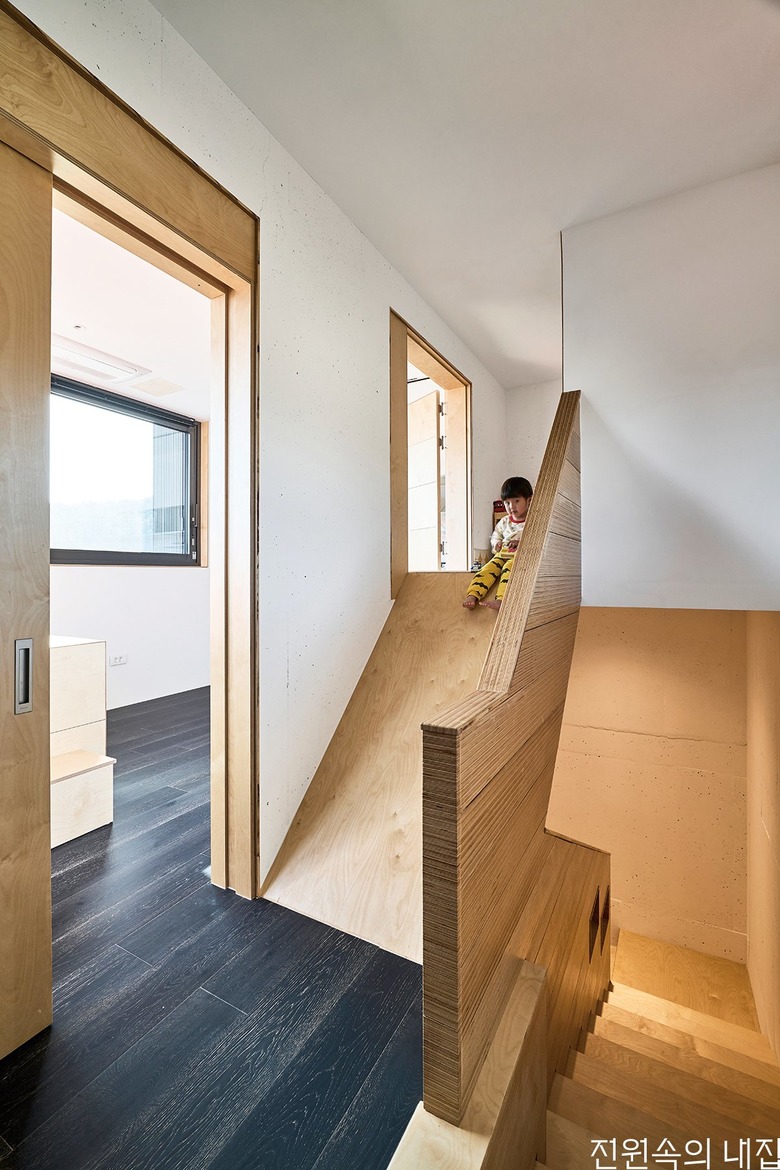 아이를 위한 놀이다락 앞에는 미끄럼틀을 둬 실내에서도 다양한 액티비티를 누릴 수 있도록 했다. |