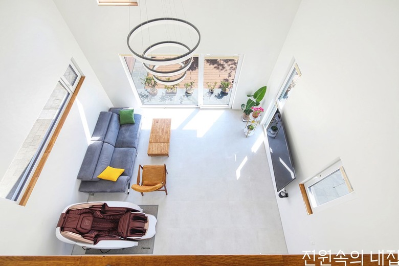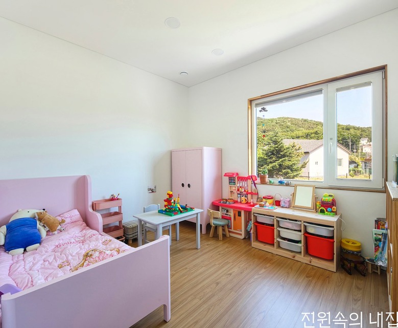 동생네는 이전에 살던 집에 만들었다가 활용도가 떨어진 2층 테라스는 만들지 않았다. 대신 아이들 방에서 나오면 가족실, 거기서 자연스레 이어진 개방형 거실에서 오픈형 주방으로 연결되는 실내공간으로 구성했다. 동생네 부부 공간은 철저히 프라이빗하게 배치하여 집 내부에서 부부 공간이 어디인지 찾기 어려운 정도이다.