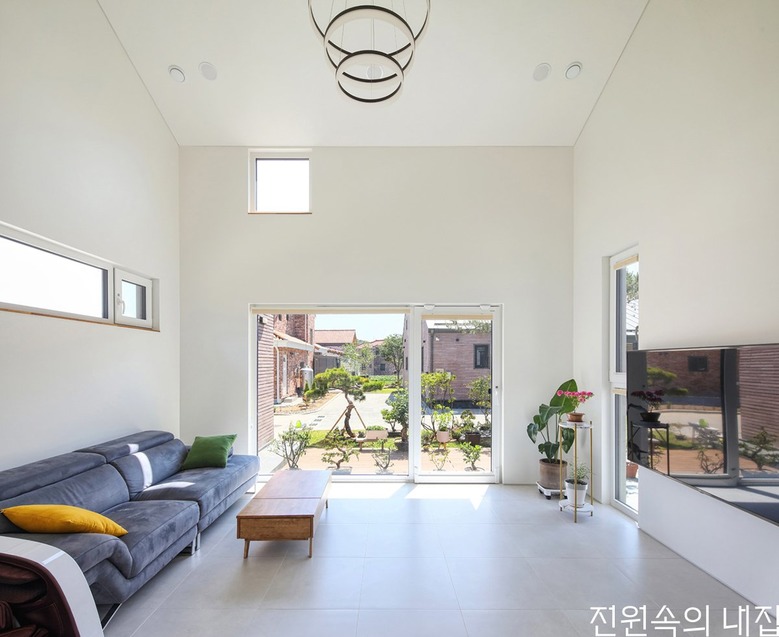 동생네 집은 아이들이 셋인 다둥이 집이라 2층집을 원했고, 누나네는 단층집을 원했다. 누나네 아들 둘은 이미 장성하였고, 집에는 거의 부부만 있는 경우가 많을 거라서 가족 상황에 맞는 적절한 면적과 층수를 계획하였다. 다만, 누나네는 30평대로 단층집을 구성해야 하는 제약이 있어 거실-주방-응접실에 집중하고 나머지 공간은 작게 면적을 배분하여 답답함이 없게 해결하였다. 특히 응접실과 거실의 천장고를 입체적으로 하여 풍부한 공간감을 주었다.