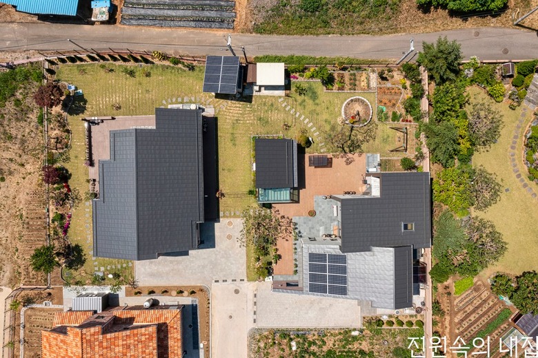 동생네 집은 아래층과 위층을 부모와 자녀 공간으로 분리하였다. 마당 생활을 좀 더 풍족하게 하고자 누나네와 동생네 사이에 썬룸을 마련하였다. |