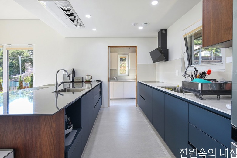 두 집 다 안살림을 맡은 분들의 의견이 중요했는데, 모두 11자형 주방 구조를 선호하였다. 작업 동선과 응접실에서 거실로 연결되는 탁 트인 구조로 구획하여 매우 흡족해했다. 집 짓는 일정이 뜻하지 않게 늘어나면서 두 집 모두 일정 기간 불편한 장소에 머물다 왔기에 더욱 집의 소중함을 느끼게 된, 그런 집짓기 과정이었다.