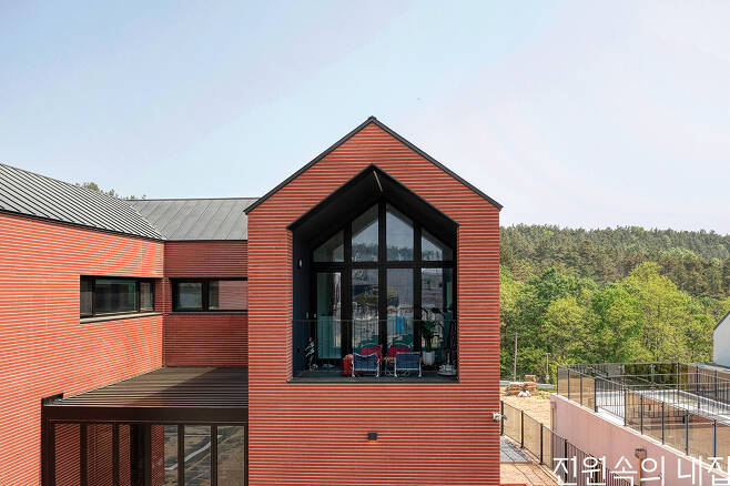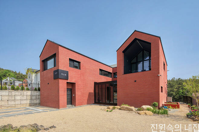 인상적인 붉은 벽돌집은 세 가지를 재료삼아 지어졌다.