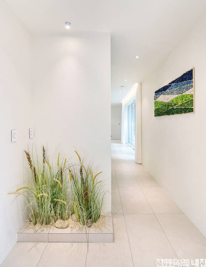 ![]() 현관에 들어서자마자 그라스로 꾸민 작은 웰컴가든이 분위기를 자연스럽게 만든다. |