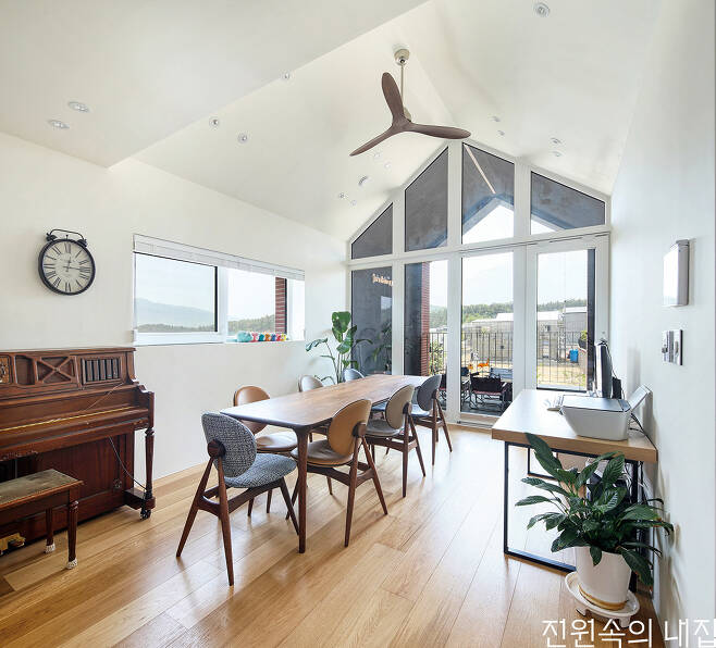 학교를 마치면 식당에 모여 서로의 숙제를 봐주고, 데크 위에는 여름을 맞아 오 남매 전용 워터파크가 개장해 설렘을 더한다. 그리고 아이들이 재밌게 에너지를 쏟아내는 모습을 거실에서 부부는 흐뭇하게 바라본다. 그러다 가끔 일상에 치여 지치거나 기분이 가라앉으면 2층 발코니에 둘러앉아 가족끼리 마음을 나눈다.