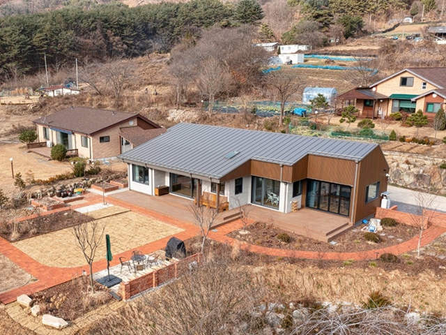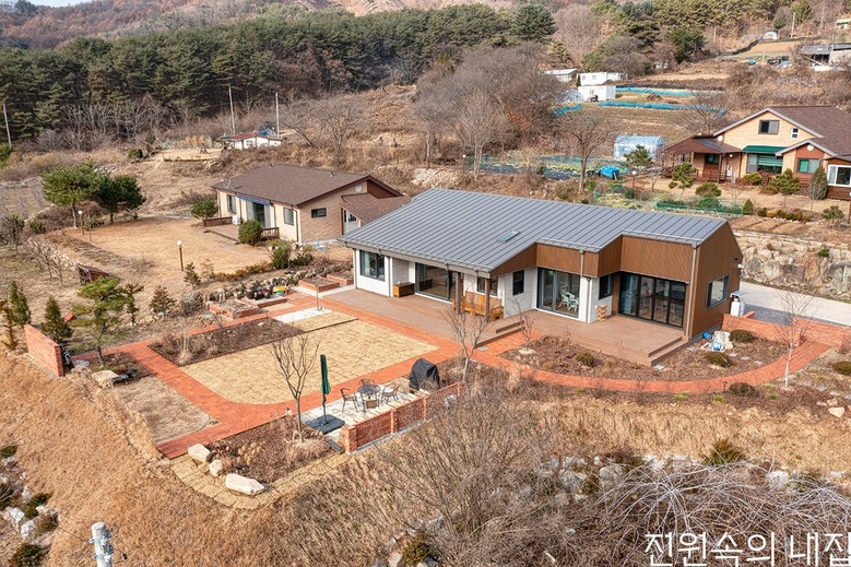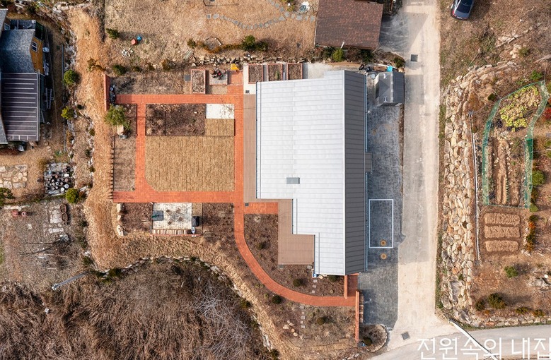 대지위치 : 경기도 양평군 양동면 매월리대지면적 : 919㎡(약278평) | 건물규모 : 지상 1층건축면적 : 129.46㎡(39.16평) | 연면적 : 129.03㎡(39.03평)건폐율 : 14.09% | 용적률 : 14.04%주차대수 : 자주식 1대 최고높이 : 5.2m구조 : 경량목구조단열재 : 벽 - T140 그라스울단열재(가급) + T50 비드법 1종3호단열재 / 기초 - T60+T100 비드법 2종1호 단열재(가급) / 지붕 - T235 연질수성폼(가급)외부마감재 : 외단열 위 콘크리트 타일, 합성목사이딩지붕재 : POS-MAC 내부식성 강판창호재 : 디크닉 | 에너지원 : LPG조경 : (주)플로시스인허가 : TOTO건축사사무소시공 : JCON건축/인테리어 디자인 : 홈스타일토토 02-720-6959 www.homestyletoto.com