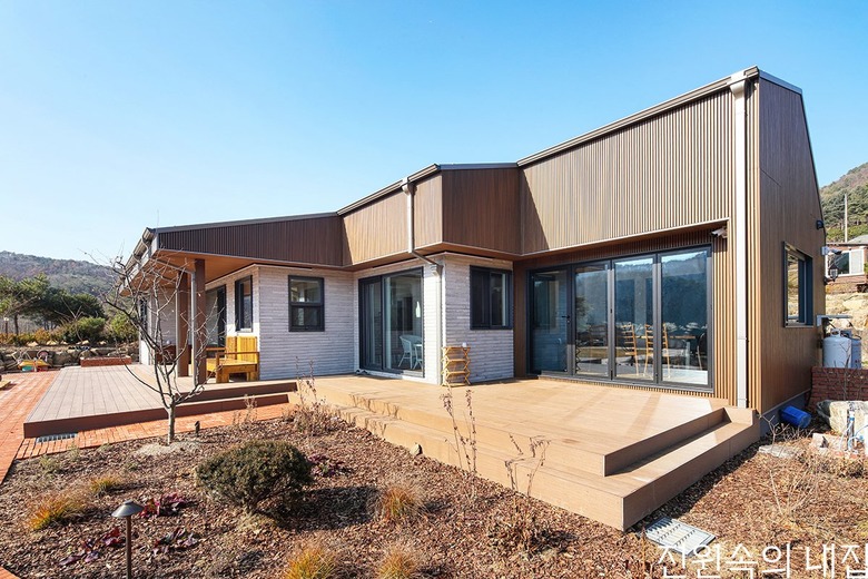 집의 규모에 비해 데크를 크게 배치했다. 계절에 따른 활용도도 많은 데다 하다못해 길냥이도 와서 낮잠을 자고 간다. 양지바른 마당의 조경도 전문조경팀의 손을 거쳐 단층집에 어울리는 정원으로 설계했다. 실내와도 잘 연계되면서도 거닐고 싶은 마당이 조성되었다.