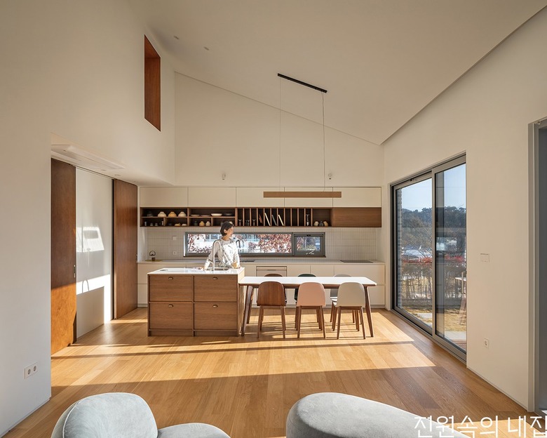 주방 거실에 있을 때나 복도를 걸을 때나 아이들이 방 앞에서 놀 때나 시선은 항상 중정을 향한다. 가족들은 항상 함께 있지 않아도 시선이 닿으며 소통이 쉬워진다. 중정은 자연을 담기도 하지만, 가족 구성원들만의 풍경을 담기도 한다. 주방에서는 처마와 툇마루로 시선 및 공간이 확장되어 개방감을 느낄 수 있다. 이는 외부로 동선을 유도하며 주방의 영역이 자연스럽게 중정 마당까지 이어진다.