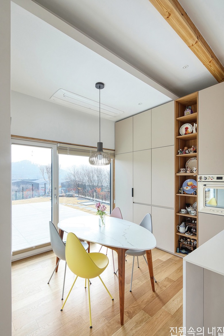 따뜻한 햇살을 누리며 살림을 하고자 한 건축주의 로망을 위해 잘 짜여진 동선과 시스템 가구에 힘을 실었다. |