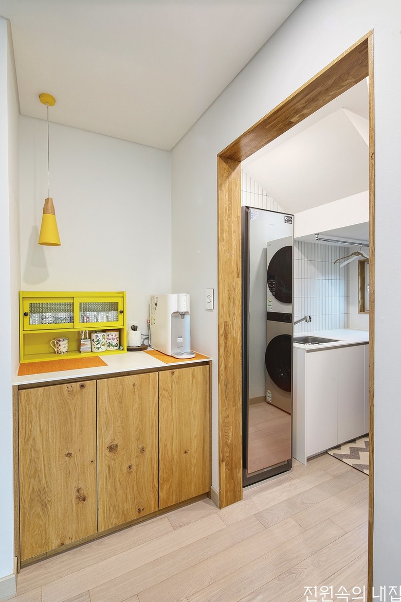 탈의와 빨래, 건조, 정리까지 세탁의 과정이 일사분란하게 이루어지도록 동선을 짰다. |