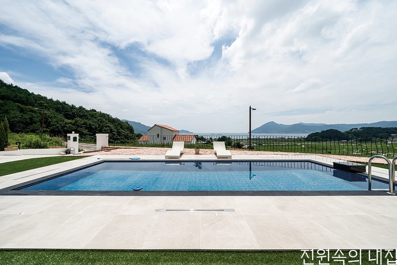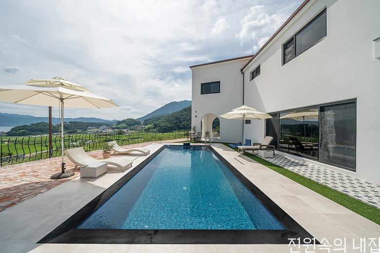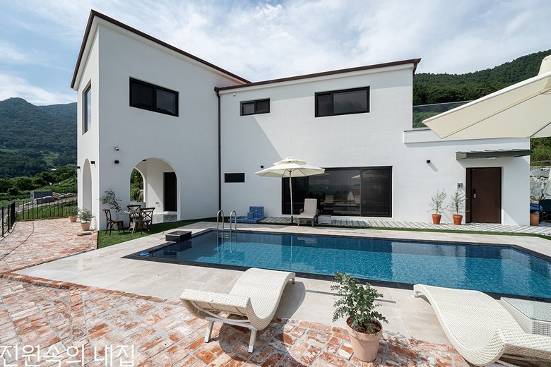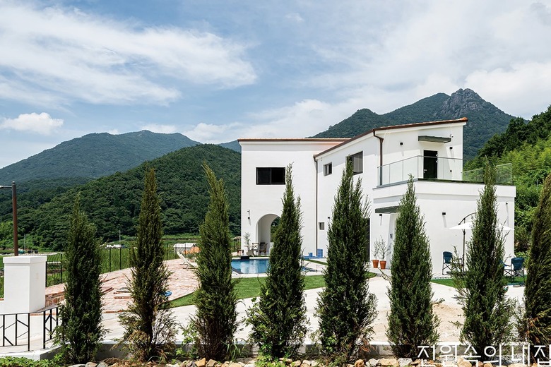 까사 지안은 기초부터 심혈을 기울였다. 철근콘크리트 건물로 기초 700mm와 헌치 구조로 내진 설계에 맞춰 두꺼운 철근으로 시공되었다. 방습과 라듐 차단을 위해 건축용 시트인 스테고 랩을 깔고 내부 단열 시공 등 보이지 않는 곳까지 면밀하게 신경 썼다. 시공은 모던한 지중해풍 주택의 느낌을 살리고 기능적인 부분은 색채 강한 스페인식 타일과 목재를 재해석하는 방식으로 진행됐다. 우선 높은 대지를 활용해 어디서든 마을과 바다를 조망할 수 있도록 주택 전면으로 넓은 마당을 확보하고 지중해풍 하얀 외부 마감재와 스페인의 간결한 정취를 담은 외부 디자인으로 마무리했다. 아치형 구조의 회랑, 스페인에서 수입한 포세린 타일 바닥, 스페니쉬 기와 그리고 화이트 회벽, 붉은색의 고벽돌과 수입 고재로 포인트를 주어 주택을 돋보이게 했다. 여기에 바다 전망이 가능한 넓은 수영장 또한 집의 가치를 한층 높여준다. 가로 9m, 폭 3m, 깊이 1.5m, 여과기 등 꽤 규모가 큰 편으로 그만큼 관리가 까다롭고 유지비가 만만치 않지만, 이곳에서 바라보는 뷰는 여느 휴양지 못지않다.
