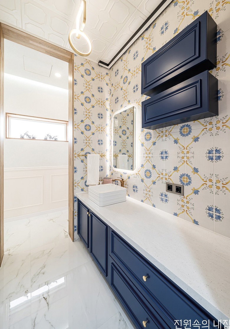 ![]() 게스트와 함께 사용하게 될 1층 욕실의 경우, 세면대를 별도로 분리 시공해 효율성을 더했다. |