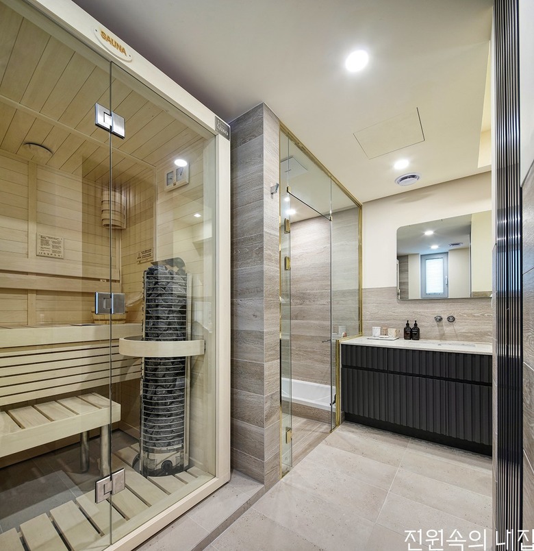 사우나가 설치되어 있는 안방 욕실. 사우나 후 샤워실로 가는 동선이 편리하다. |