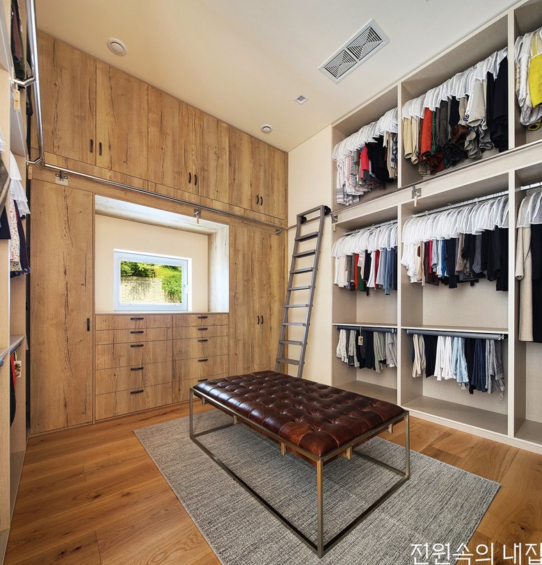 거실의 높은 층고를 유지한 이국적인 드레스룸. 3단의 넉넉한 수납공간을 확보했다. |
