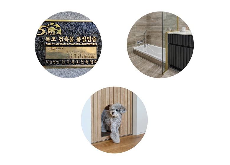 한국목조건축협회에서 진행하는 목조건축 감리제도의 인증을 받았다. 건축주 부부는 목조주택이 주는 생활의 편리함을 만끽하는 중이다.