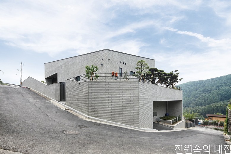 집짓기가 처음인 건축주 부부에게 호멘토는 좋은 파트너였다. 경사지를 극복하고 남쪽 전망을 확보하기 위해 마당 높이를 설정하는 것이 중요했기 때문에 많은 미팅이 필요했다. 가파르고 좁은 골목에 위치한 대지의 특성상 시공 과정에서 어려움도 많았다. 그때마다 건축주와 설계사무소는 밤낮없이 적극적으로 피드백을 주고받았다. 그렇게 어느 방향에서 바라보아도 경사지 라인과 조화를 이루는, 모두가 만족하는 집이 탄생했다.