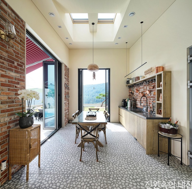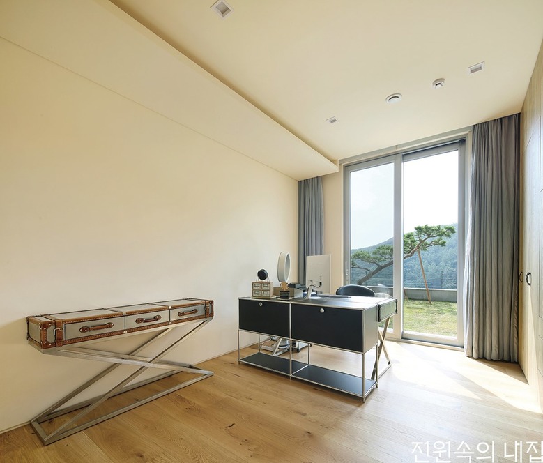 선룸 옆 작업 공간. 반대편 부부의 침실에서부터 거실을 지나 길게 이어지는 마당과 전망을 이곳에서도 볼 수 있다. |