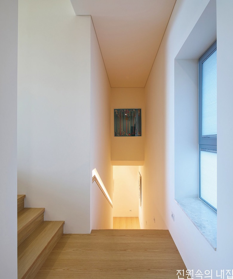 지하로 내려가는 계단실. 계단 난간에 은은한 간접조명을 설치했다. |