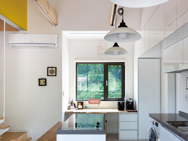 주방 옆 창 아래 무심하게 배치한 책상. 때로는 잡동사니를 쌓기도 하고, 창 밖 풍경을 바라보며 일기를 쓰는 공간이 되기도 한다. |