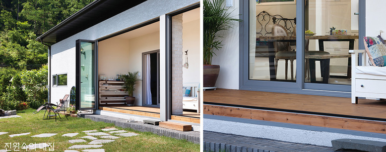 양평 동고동락의 마당과 실내 사이의 복도 1평이 완충공간 역할을 하면서 두 공간을 자연스럽게 연결한다. |