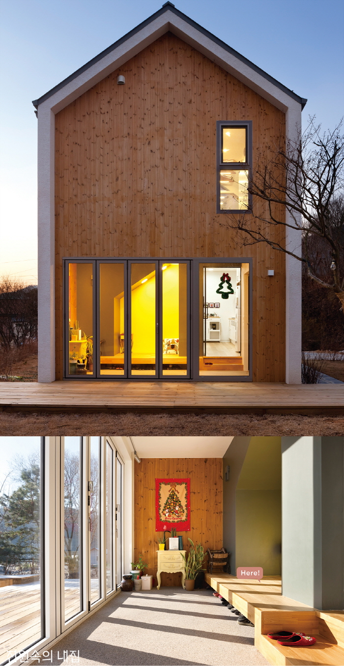 현관에 1평을 더 붙여 주었더니, 소담한 미니 마당이 되었다. 폴딩도어를 활짝 열면, 현관에 설치된 마루는 커다란 대청마루로 변한다. 평범했던 현관이 자투리 공간 하나만으로 이렇게 달라질 수 있다니. 세상 어디에도 없는 유니크한 누마루형 현관이 탄생했다. 18평 공간의 집주인은 이 현관을 ‘놀이터’라고 부른다. _양평 소소한집