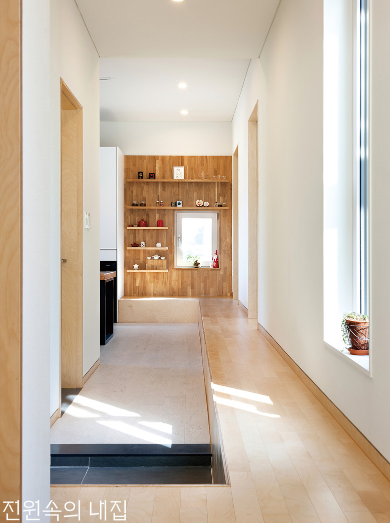 복도 끝은 설계에서 아주 중요한 포인트다. 대개는 시선의 확장을 위해 창문을 두는 편인데, 특별한 목적을 위한 공간을 연출하기에도 안성맞춤이다. 동선인 한편, 더 이상 갈 곳 없는 길의 끝이니 작은 공간 주머니가 복도 끝에 매달려 있다고 생각하면 된다.