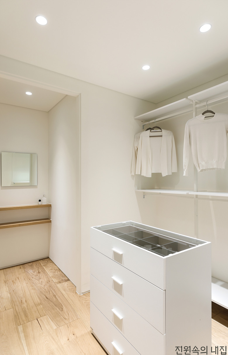 침실과 이어진 드레스룸에는 오픈형 행거 가구를 들여 답답함을 해소했다. |