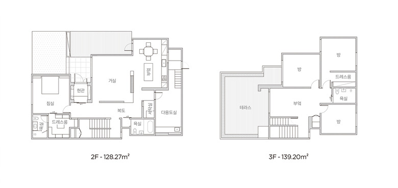 위치 ▶ 충청북도 청주시|거주인원 ▶ 2명(부부), 반려견 1, 반려묘 1건축면적 ▶ 128.27㎡(38.80평)내부마감재 ▶ 벽 – 벤자민무어 페인트 / 바닥 - 포세린 타일(오이스터 트레이딩), 원목마루(떼카코리아)창호재 ▶ 이건창호욕실 및 주방 타일 ▶ 오이스터 트레이딩|수전 등 욕실기기 ▶ 한스그로헤, 퓨로계단재·난간 ▶ 원목마루|조명 ▶ 루이스폴센현관문 ▶ 이건창호, 리치도어|중문 ▶ 이건라움 슬라이딩 도어|방문 ▶ 현장 제작붙박이장 ▶ 리바트 이즈마인 프레임 드레스룸|식탁 ▶ Niels.O.Moller거실장 ▶ USM시공·설계 ▶ 스페이스.d 043-256-8005 www.instagram.com/space.d901