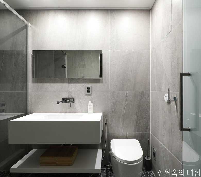 욕실에는 인조대리석으로 제작한 세면대, 직수 타입의 양변기 등을 두어 일반적인 화장실의 형태를 탈피했다. |