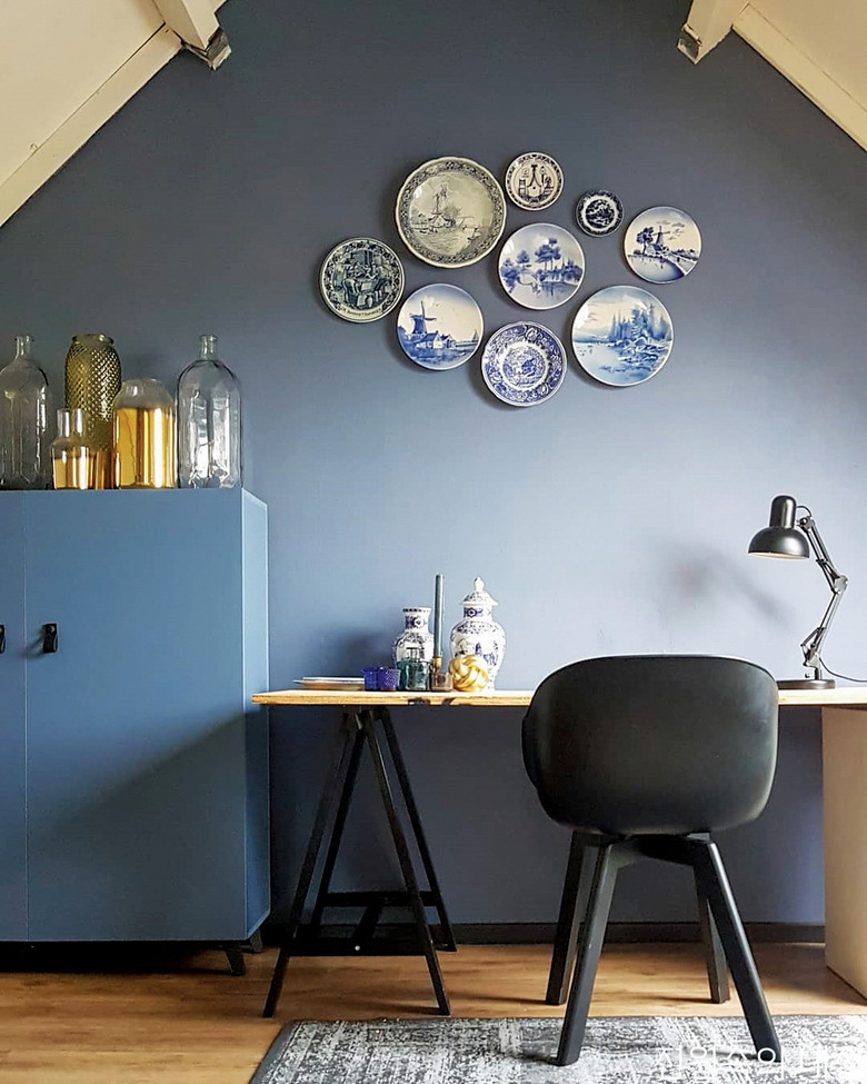 자칫 심심할 수도 있는 다락방 한편에는 빈티지 그릇 등으로 벽을 장식했다. #atticroom #walldeco |