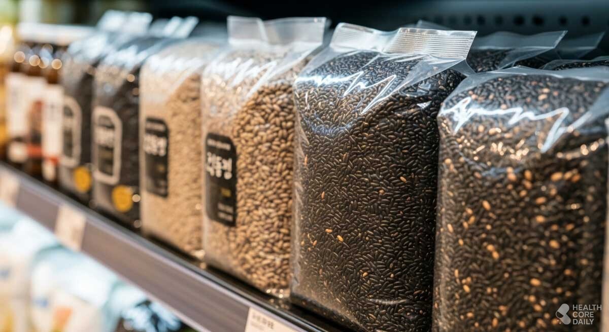 마트에 진열된 흑미. / 헬스코어데일리 |