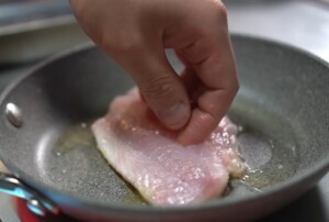 3. 생선은 반드시 껍질부터 팬에 닿게