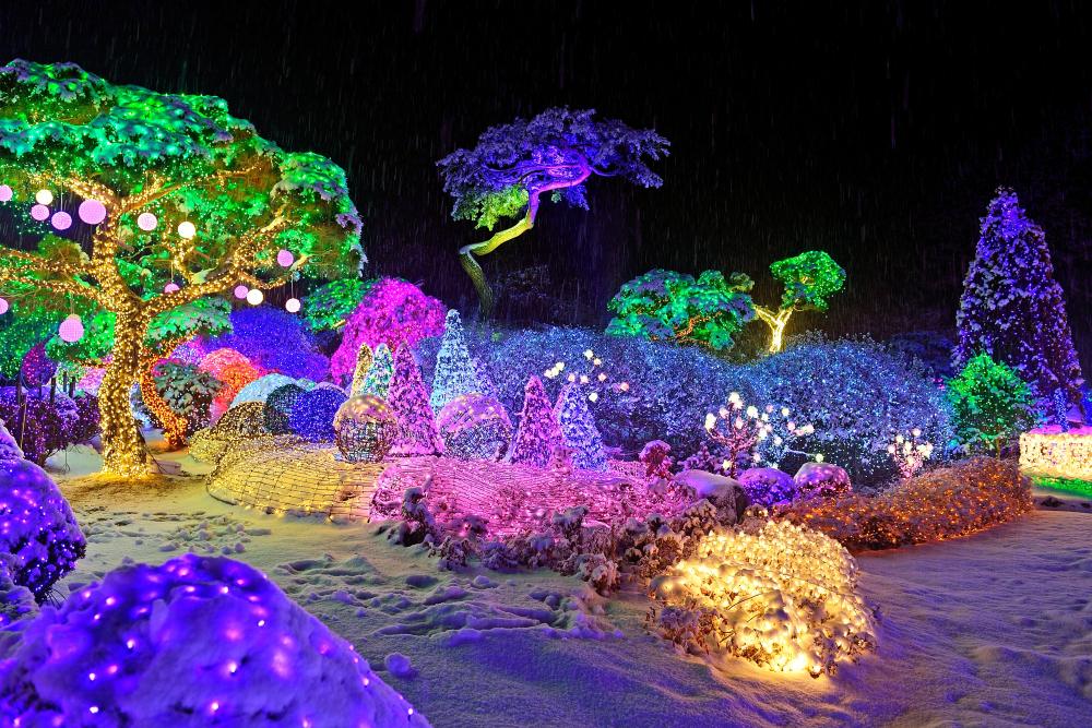 경기도 가평군 상면에 자리한 아침고요수목원은 겨울이면 더 낭만적으로 변하는 경기도 여행지입니다. 오색별빛정원전이라는 야간 조명 축제로 동네방네 화려하게 치장하는 덕분이죠. 숲길을 따라 화려하게 흘러드는 조명과 나지막한 겨울 공기가 둘만의 대화를 더욱 잔잔하게 만들어줍니다.