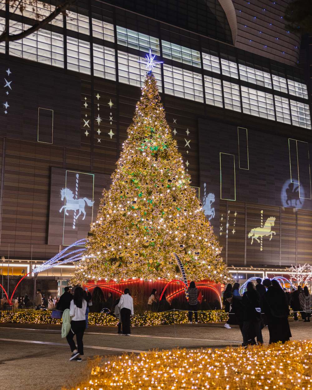 가장 눈에 띄는 것은 초대형 크리스마스트리 앞에서 하루 다섯 번 인공 눈이 내리는 스노우 샤워 이벤트와 동화 속 주인공이 된 듯한 기분을 만끽할 수 있는 2층 회전목마입니다. 두 사람만의 인증샷을 남기기에 완벽한 장소이죠.