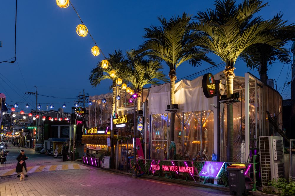 낮에는 개성 넘치는 카페와 보드게임방, 밤에는 거리 공연과 라이브 클럽으로 이어지는 자유로운 에너지가 매력적이에요. 걷기만 했을 뿐인데 벽화 거리를 만나고, 어디에서도 볼 수 없었던 플리마켓, 그리고 열정 가득한 젊은 아티스트들의 즉흥 공연까지 무료로 만날 수 있죠.