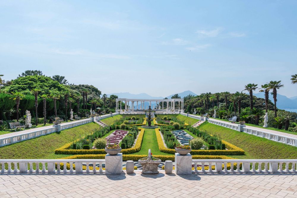 외도 곳곳에는 조각상과 분수, 테라스 가든이 이어지며 마치 헤라 신전이 있을 법한 공간처럼 신비로운 느낌이 납니다. 바다 건너 보이는 거제 풍경과 푸른 색감이 조화를 이루어 그리스 로마 신화 속 해신 포세이돈이 등장해도 어색하지 않을 정도의 분위기죠.