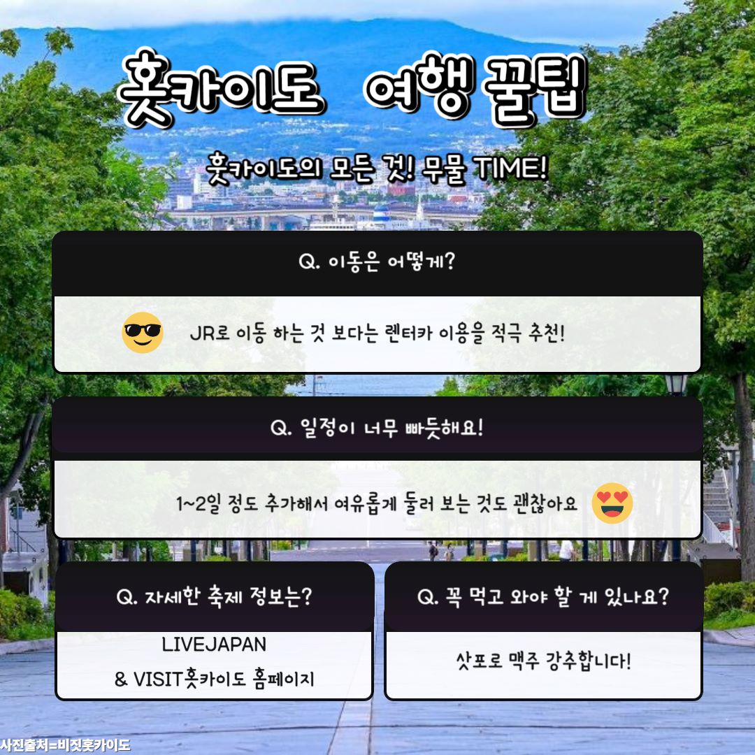 2025년 홋카이도 여름 여행 코스, 지금 바로 소개해 드릴테니 북해도의 쾌적함을 만끽해 보세요!