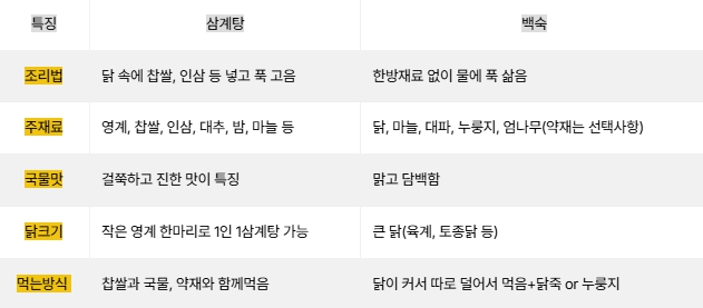 ★삼계탕 백숙 차이