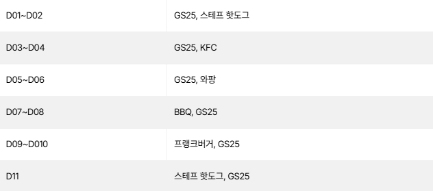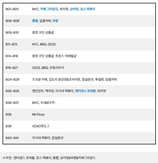 아래에서 소개할 표를 통해 원하는 매장이 위층이나 외부에 있다면 1층에서 웨이팅 하지 말고 2층이나 3층, 외부에서 포장해 오는 것을 추천해 드립니다.