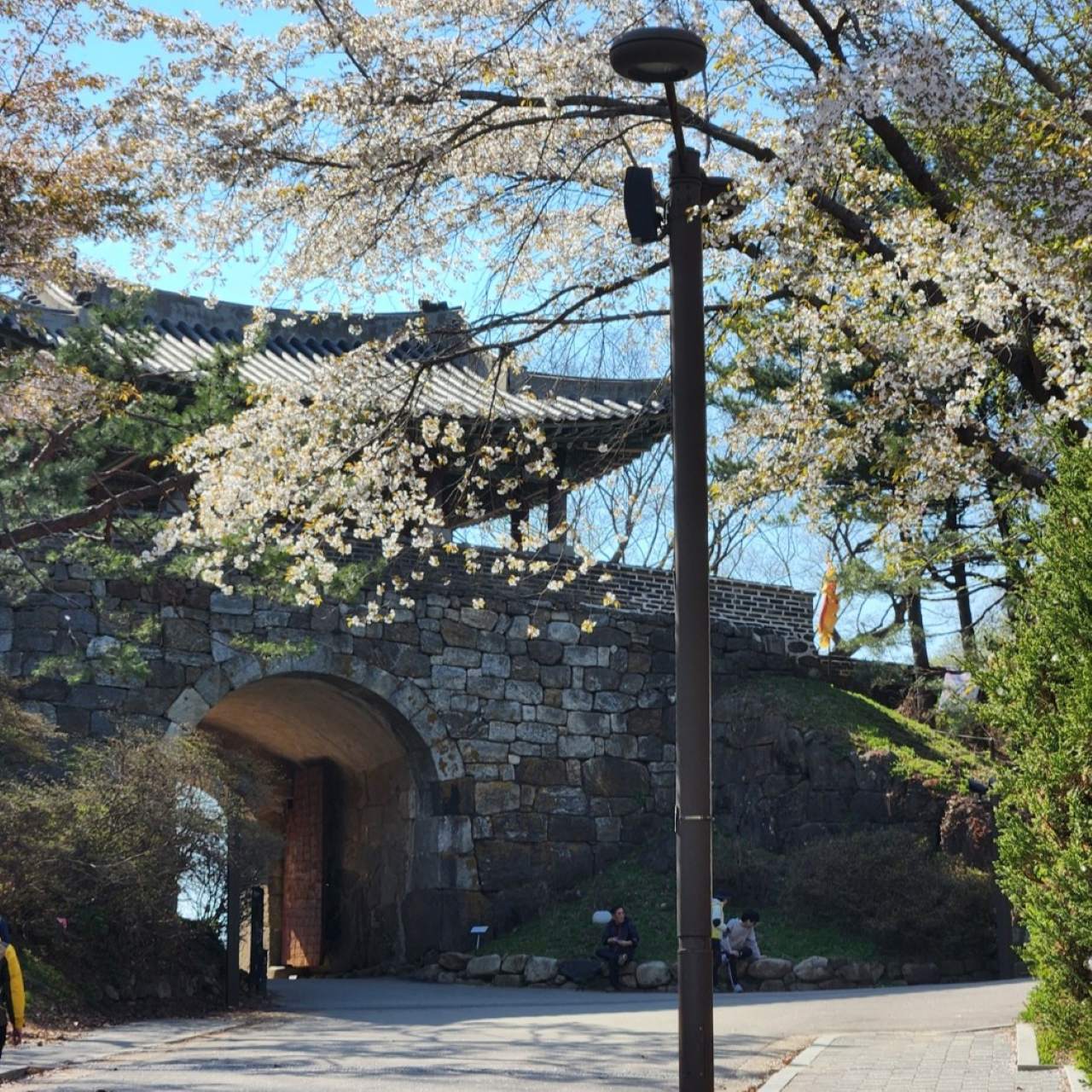 특히 동문·북문 쪽으로 이어지는 숲길은 벚꽃과 소나무가 섞여 있어, 온통 분홍색으로 물든 길과는 조금 다른 분위기를 보여줍니다. 성곽 위쪽으로만 다니지 말고, 마을 쪽 카페나 한식당까지 내려와 식사까지 함께 해결하면 하루 코스로 손색없는 경기도 벚꽃 명소가 됩니다.