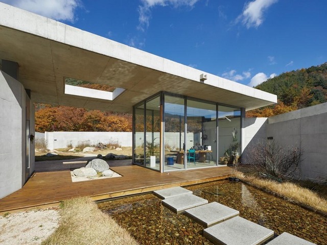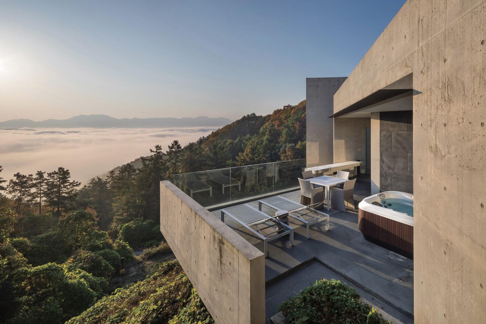 원형의 문을 지나면 연못들과 콘크리트 건물들을 차례로 만난다. 자연 속에서 개방감과 고립감을 동시에 느끼며 총체적 경험을 할 수 있도록 만들었다. 실내외 스파, 개인 풀장 등을 갖춘 공간에서 북한강을 조망하며 취하는 휴식은 오래도록 기억에 남을 것이다.