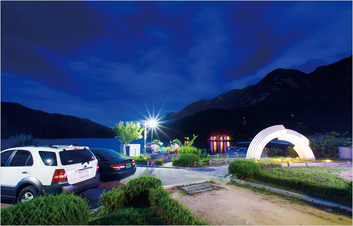 산정호수 조각공원과 산책로에도 조명이 설치되어 있어 낮과는 전혀 다른 분위기를 물씬 풍겨낸다. 어둠 속에서 부드럽게 들려오는 물소리의 잔잔한 여운이 가슴 속에 깊은 파동을 일으킨다.