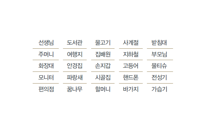 방법 다음 표의 단어 25개를 2분 동안 최대한 많이 기억한 뒤 기억한 단어를 적는다.