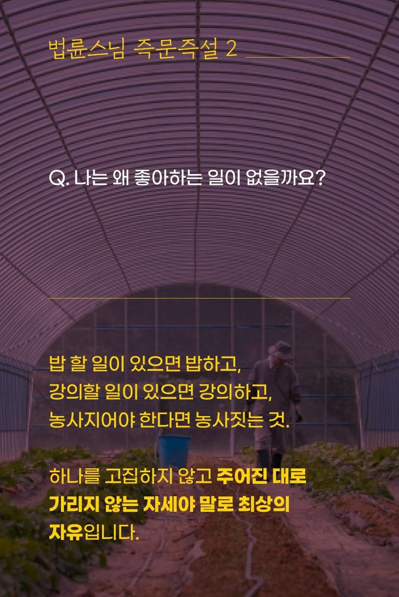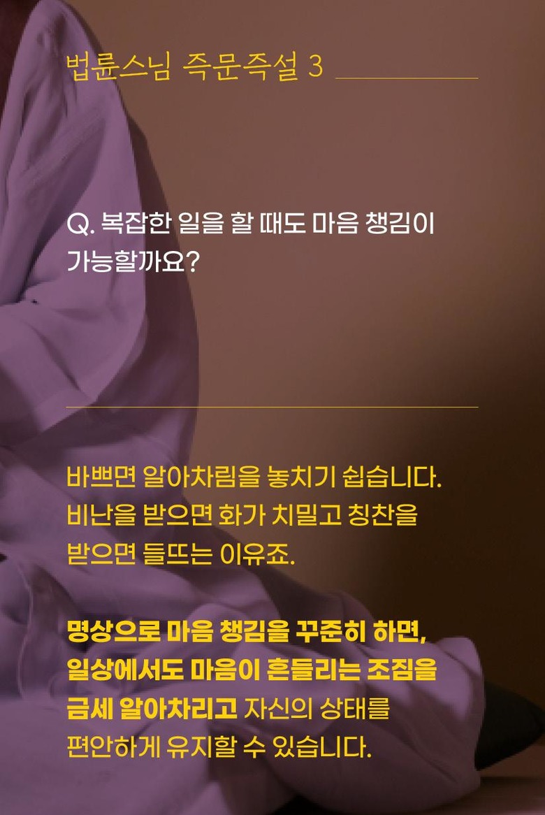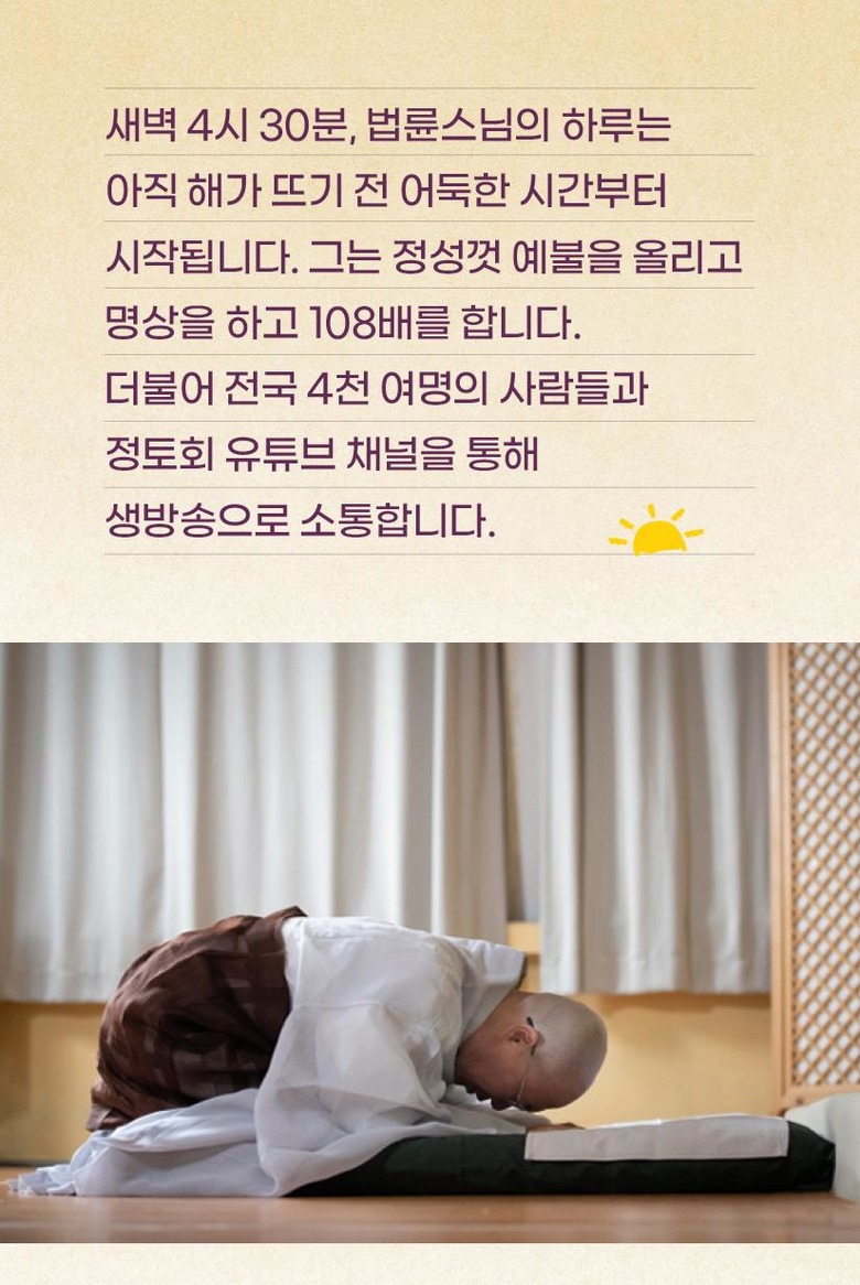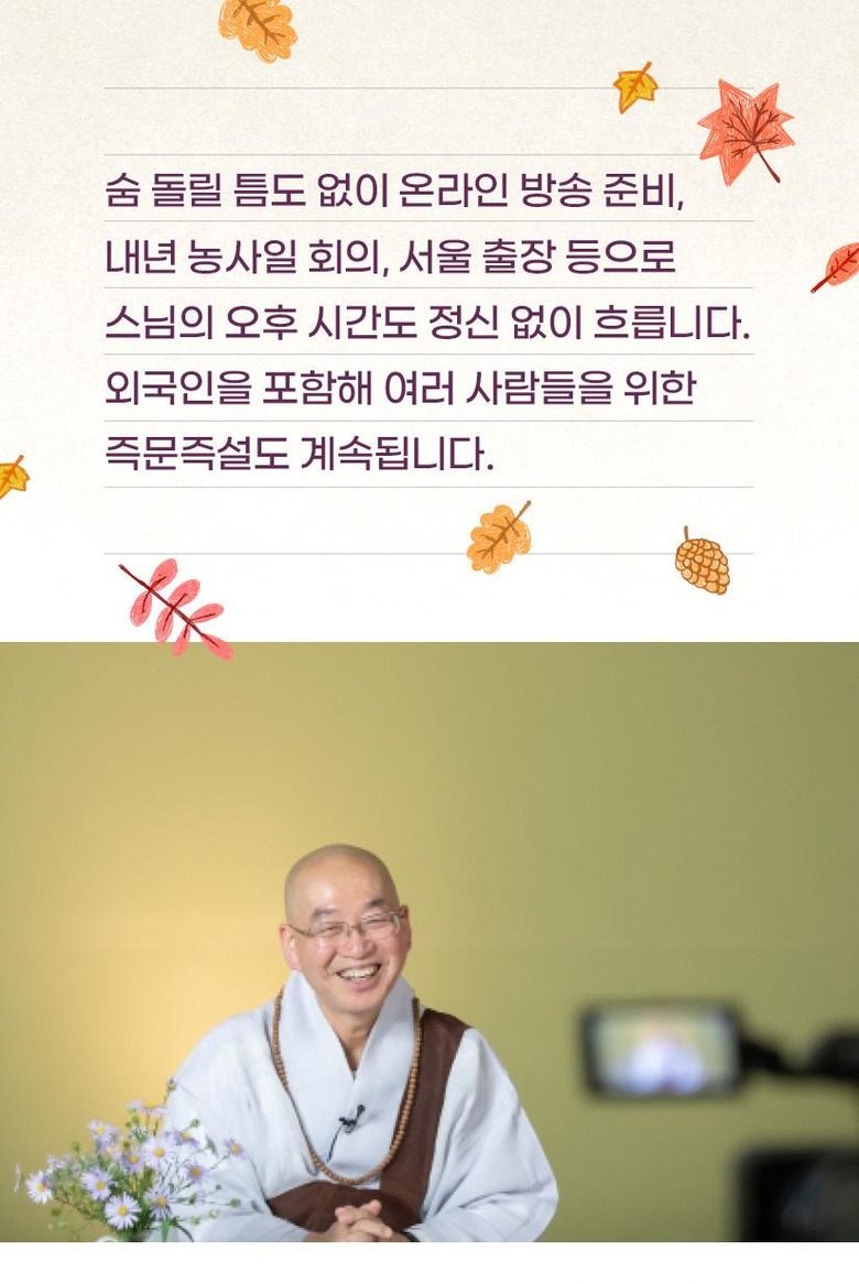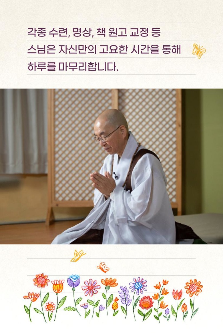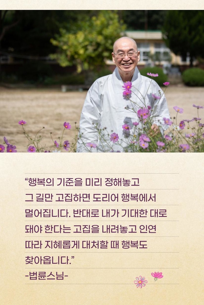 오늘 하루도 행복해지고 싶은 당신. 새벽 4시 30분부터 어둑한 밤이 될 때까지 바쁘게 흐르는 법륜스님의 하루에서 행복의 힌트를 얻어보자.