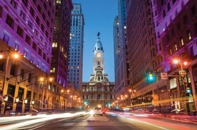 필라델피아 도시 중심부에 위치한 시청은 1871년에 짓기 시작해 1901년에 완공한 프랑스식 건축물이다. 프랑스 황제 나폴레옹 3세 시절에 유행한 스타일을 따랐다. 이 건물을 짓는 데만 240만 달러가 들었는데 당시에는 천문학적인 액수였다.