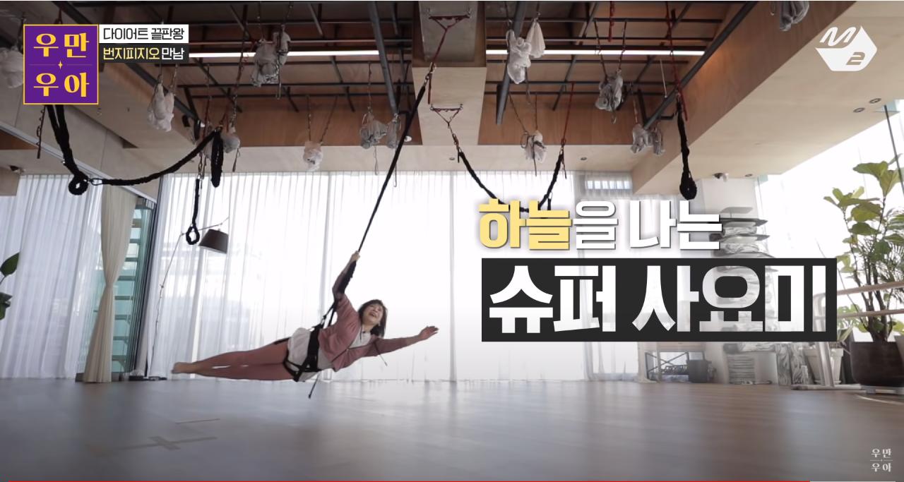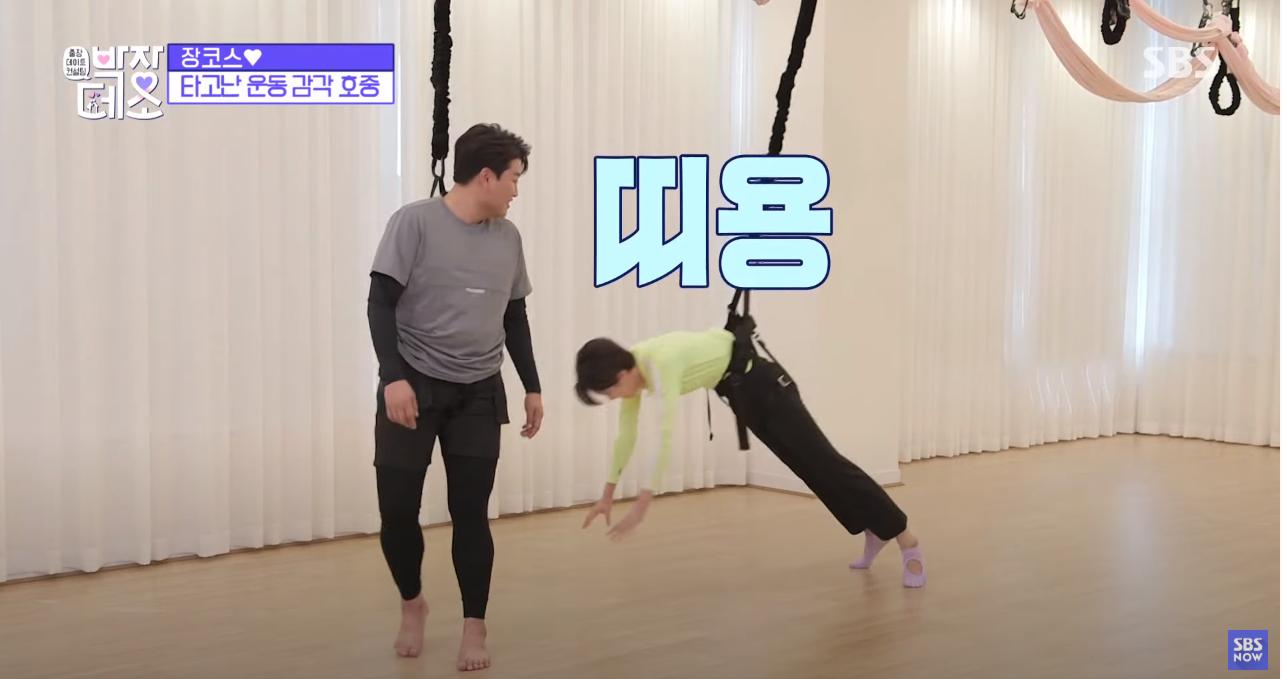번지피지오로 코어 근육 필요성을 인지한 케이스-2: 개그우면 장도연은 번지피지오를 하는 내내 허리가 공중으로 들려있는 상태로, 코어 근육이 부족하여 코드의 힘을 이기지 못하는 모습을 보였다.
