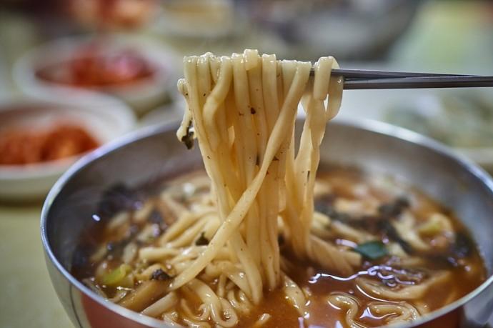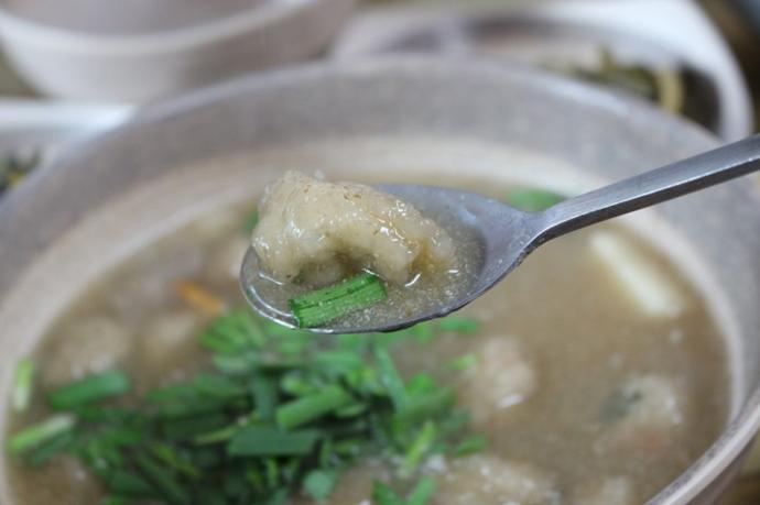 22년째 식당을 운영 중인 주인장은 좀 더 나은 음식을 만들기 위한 노력을 게을리하지 않는다. 감자옹심이에 노란 국수 면발이 들어가 색감과 식감을 더해주는 것이 특이한데, 강황가루, 밀가루, 감자전분을 섞어 직접 개발했다고 한다.