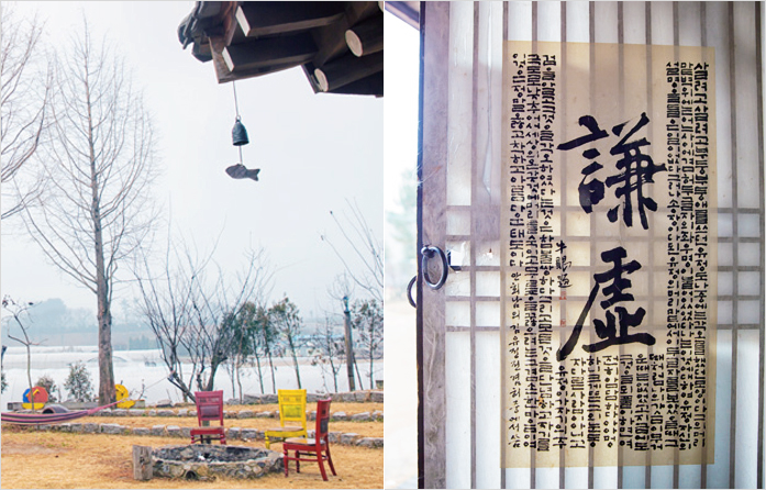춘천 서면은 북한강과 소양강이 만나는 의암호와 마주한 호수 마을이다. 이곳에 주인장이 직접 서까래 주춧돌을 다듬고 깎아내어 지어올린 한옥 게스트하우스가 있다. 사진으로 본 소담한 우리네 정취가 마음이 들어 이 집에서 하룻밤을 묵기로 했다.