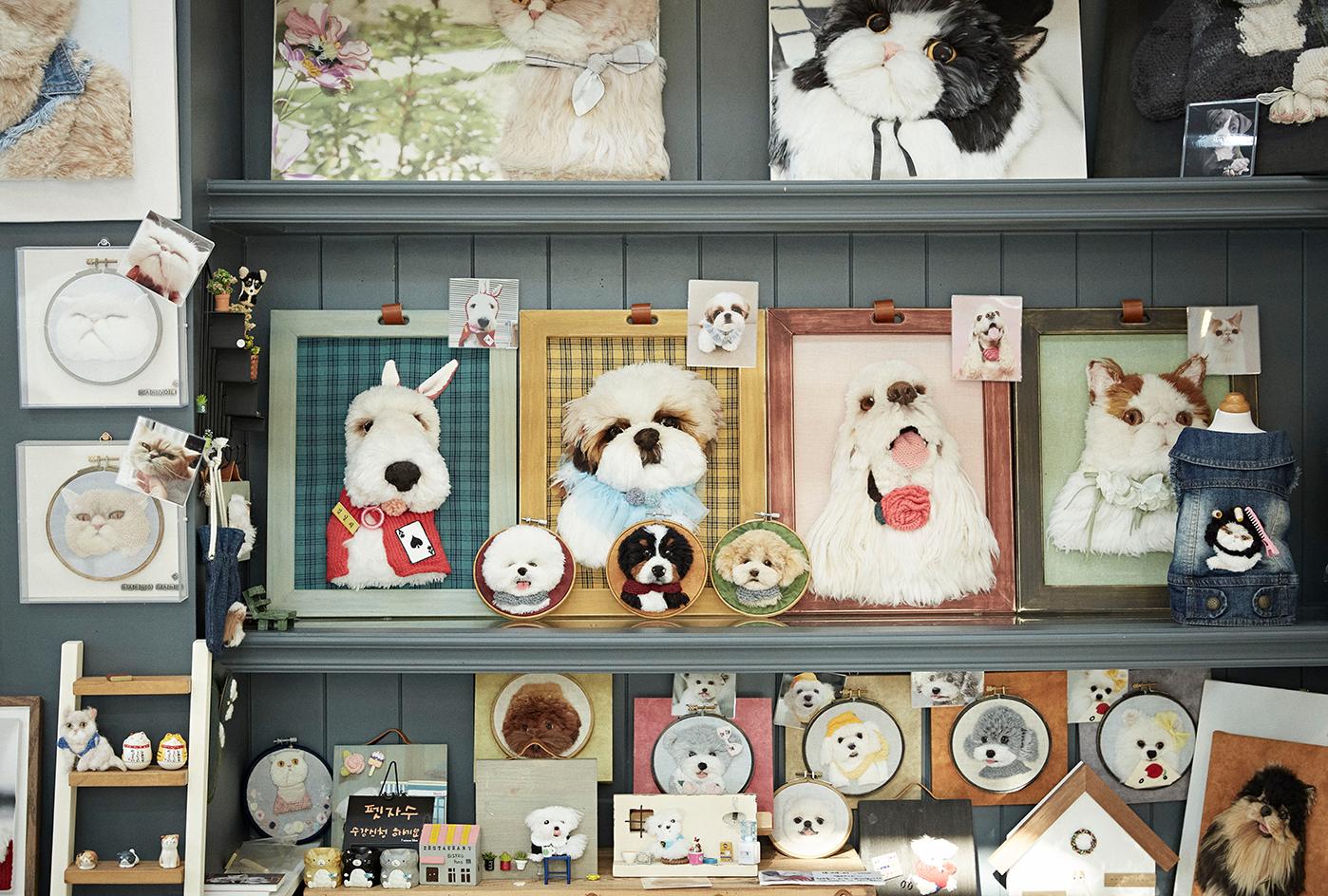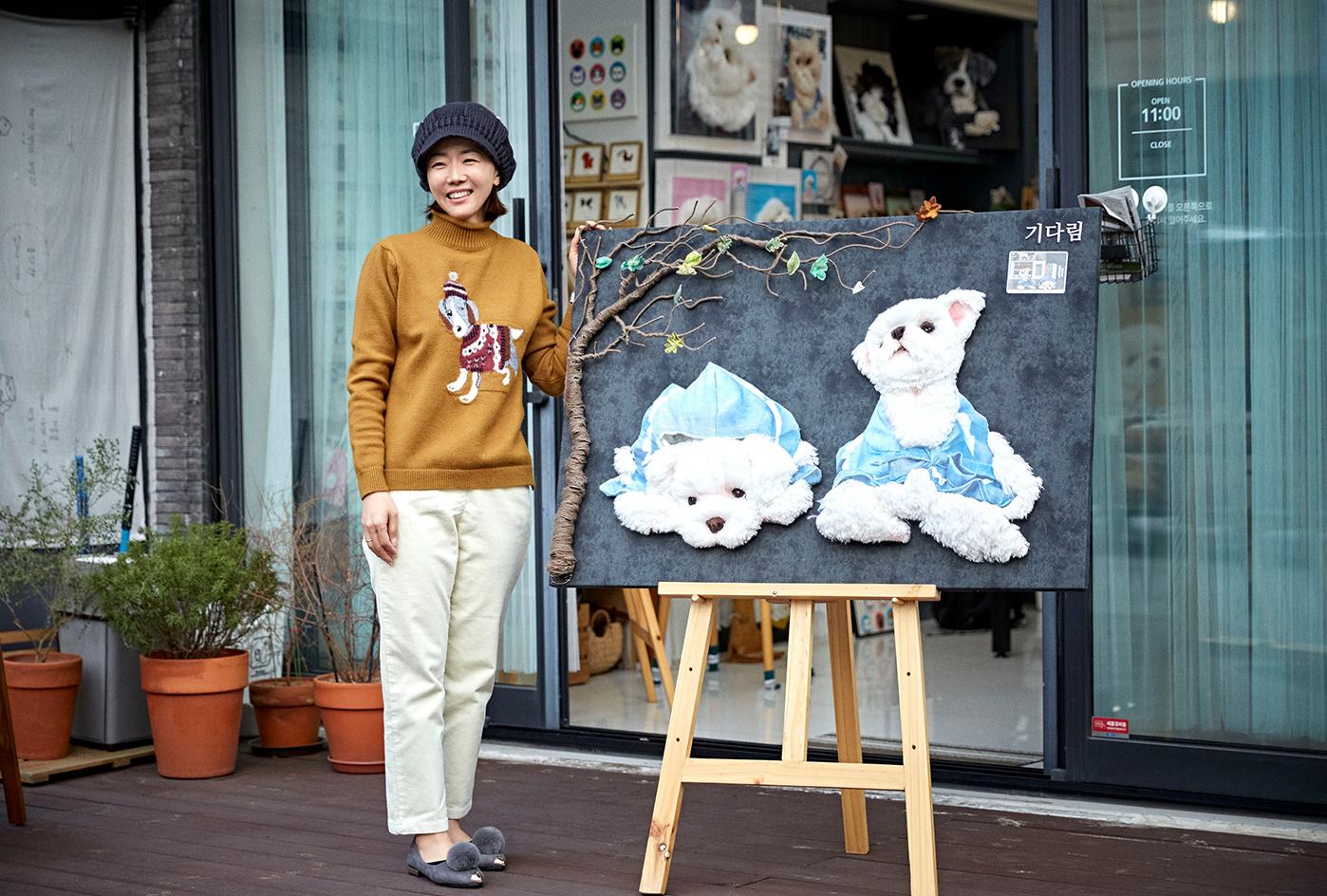 경기도 성남 판교동 골목에 마치 살아있는 듯한 반려견, 반려묘들의 크고 작은 그림이 걸린 공방이 있다. 자세히 들여다보니 그림이 아닌 반려동물의 눈, 코, 입, 털 하나까지 입체적으로 표현해 생기를 불어넣은 이색 자수 작품이다.