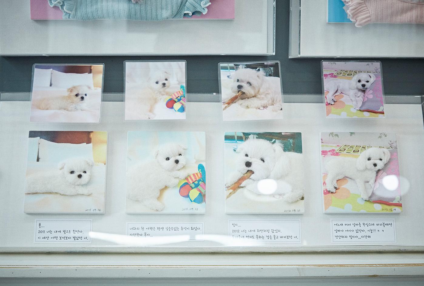 가장 작은 사이즈가 20cm인데 제작료는 30만원부터 시작합니다. 큰 사이즈의 작품은 100만원까지도 해요. 소요 시간은 크기는 물론 작가마다 다르지만 빠르면 3~5일 정도 걸립니다. 어떤 분들은 100만원이나 하는 펫자수는 터무니 없이 비싸다고 하기도 하고 어떤 분들은 눈물을 흘리며 소중하게 봉투에 돈을 담아 오시기도 합니다. 펫자수는 기계적으로 생산된 물품과는 다릅니다. 작가는 의뢰인의 반려동물 사진을 수십장 본 뒤 작업에 들어가고 작품을 만들며 눈물을 흘릴 만큼 감정이 많이 들어가요. 그렇게 완성된 작품에 의뢰인들도 똑같은 감정을 느끼고 그런 점에 가치를 두는 것 같아요.
