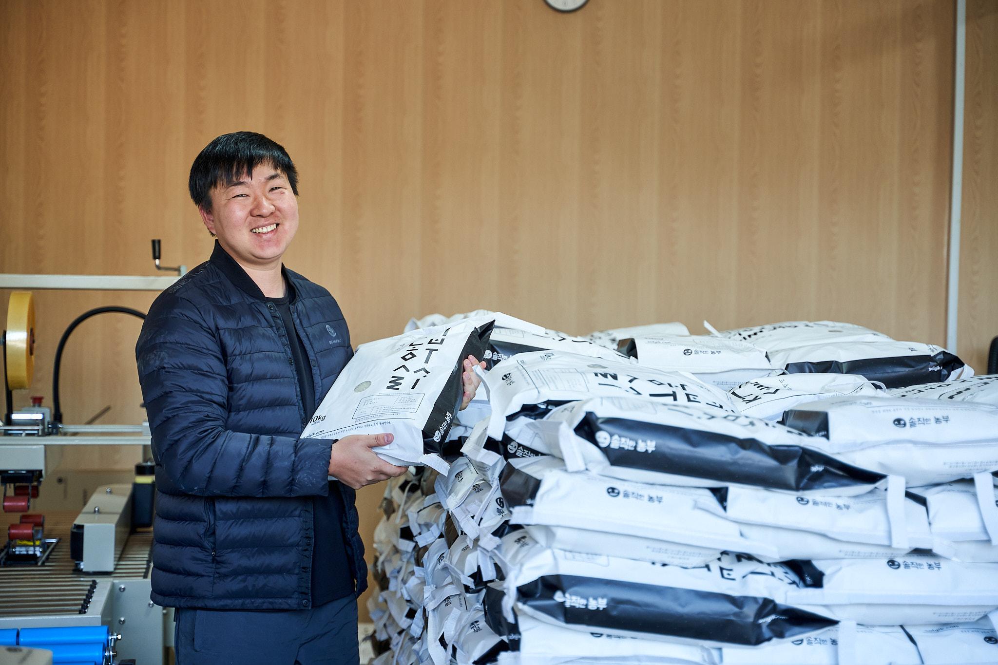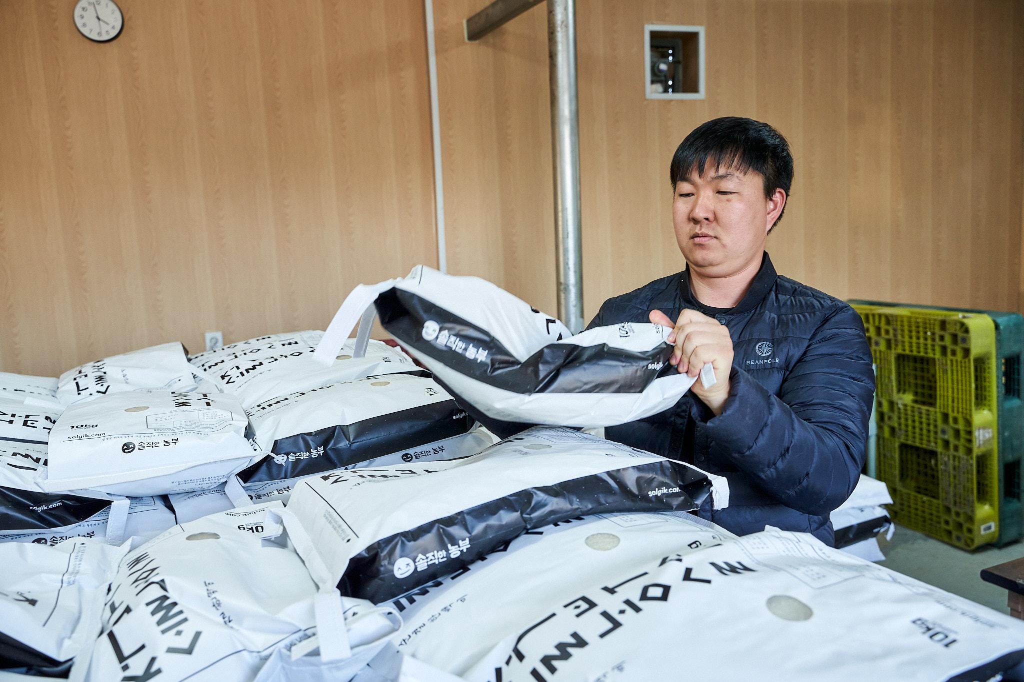 “농업에 충실하려다 보니 처음엔 쌀을 마대에 담아 판매했어요. 포장에 들어가는 돈을 아껴서 그만큼 저렴하게 판매하려고 했죠. 그런데 유통을 원활히 하려면 박스가 필요하더군요. 그래서 30분 만에 지금의 패키지 디자인을 만들었죠. 솔직한 농부, 쌀 순백의 느낌을 살렸어요.”